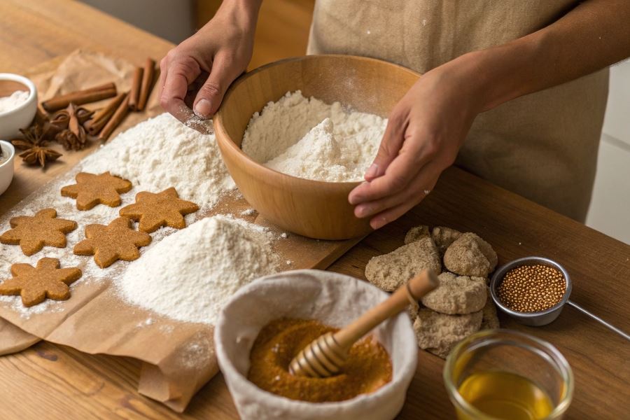 Wskazówka eksperta: Dla idealnej tekstury pierniczków warto łączyć różne typy mąki – np. 70% mąki typu 650 z 30% mąki typu 2000 zapewni równowagę między stabilnością a bogatym smakiem.