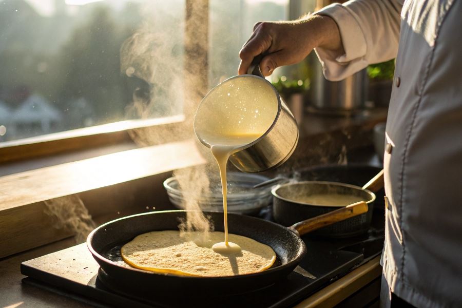 Praktyczny test: Zanurz łyżkę w cieście i podnieś – powinno pokrywać tył łyżki cienką, równomierną warstwą. Jeśli spływa zbyt szybko, dodaj odrobinę mąki; jeśli jest zbyt gęste, dolej mleka.