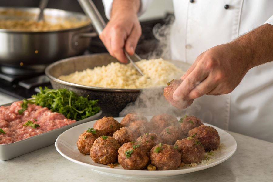 Kluczowy trik profesjonalistów: Ryż można ugotować w bulionie zamiast w wodzie, co nada pulpetom głębszy smak i sprawi, że będą bardziej soczyste.