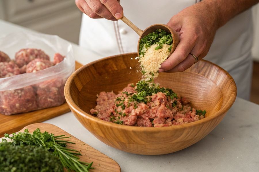 Namaczanie pieczywa to technika, która znacząco wpływa na konsystencję. Bułkę najlepiej namoczyć w mleku lub bulionie przez minimum 10 minut, a następnie delikatnie odcisnąć – nie całkowicie, zachowując część płynu. Pieczywo powinno stanowić około 15-20% całkowitej masy mięsnej.