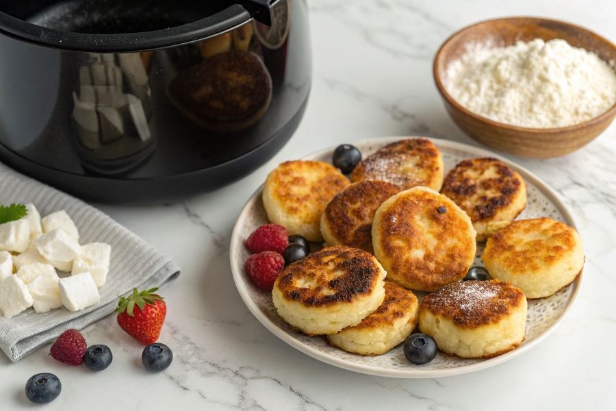 Wskazówka eksperta: Przed włożeniem syrników do grilla powietrznego, delikatnie spryskaj je oliwą w sprayu. To pomoże uzyskać jeszcze bardziej chrupiącą powierzchnię bez nadmiernego tłuszczu.