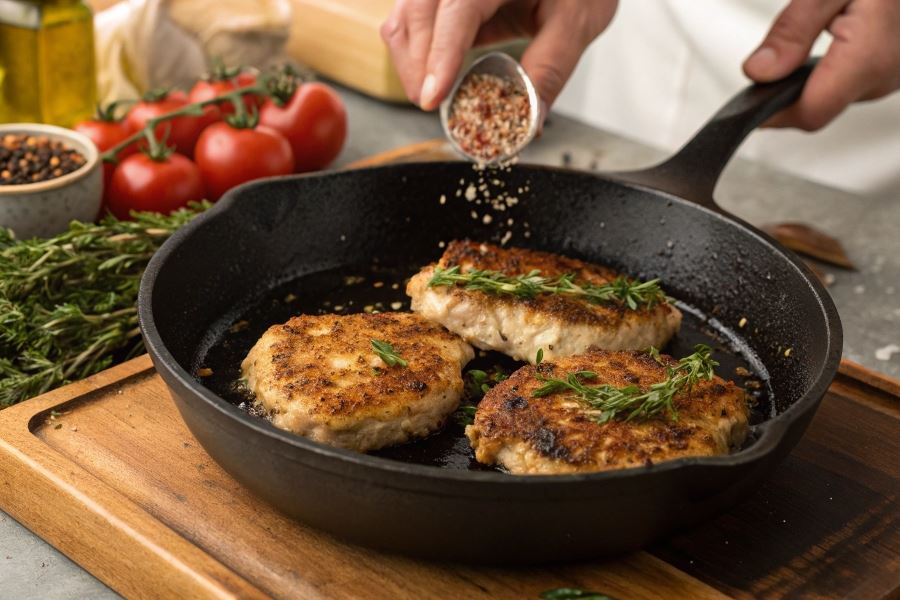 Zachowanie soczystości indyczych kotletów wymaga kilku sprawdzonych technik. Panierowanie w panierce z dodatkiem jogurtu tworzy barierę zatrzymującą wilgoć. Krótkie marynowanie mięsa (30-60 minut) w mieszance oliwy, soku z cytryny i ziół znacząco poprawia soczystość. Skuteczną metodą jest również odpoczynek po smażeniu – odstawienie kotletów na 3-5 minut pod przykryciem z folii aluminiowej pozwala na równomierne rozprowadzenie soków.