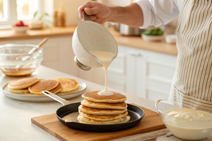 Sekret puszystych naleśników z jogurtem tkwi w odpowiednim napowietrzeniu ciasta podczas mieszania oraz w czasie odpoczynku przed smażeniem.