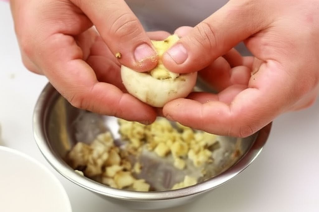 Oczyść pieczarki, wypełnij je doprawionym serem.