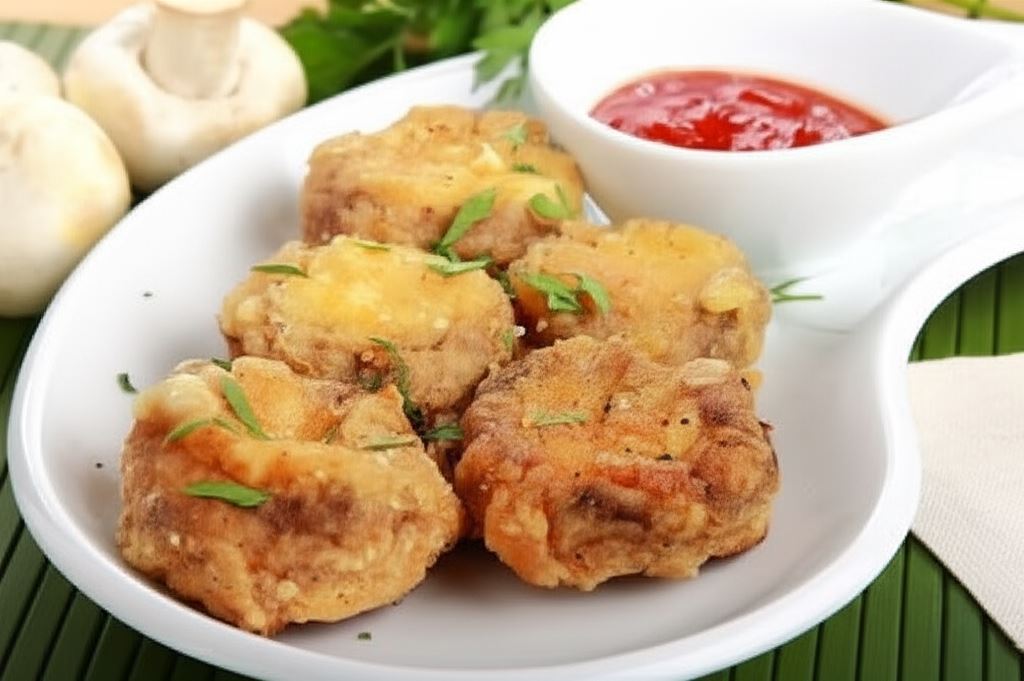 Potem smaż w głębokim oleju aż się zrumienią. Serwuj przygotowane pieczarki z ketchupem.