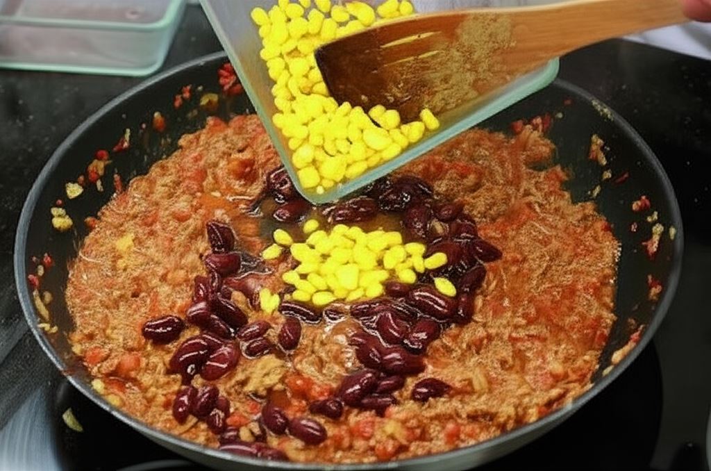 Gotuj około 20 minut, następnie wsyp kukurydzę i fasolę.