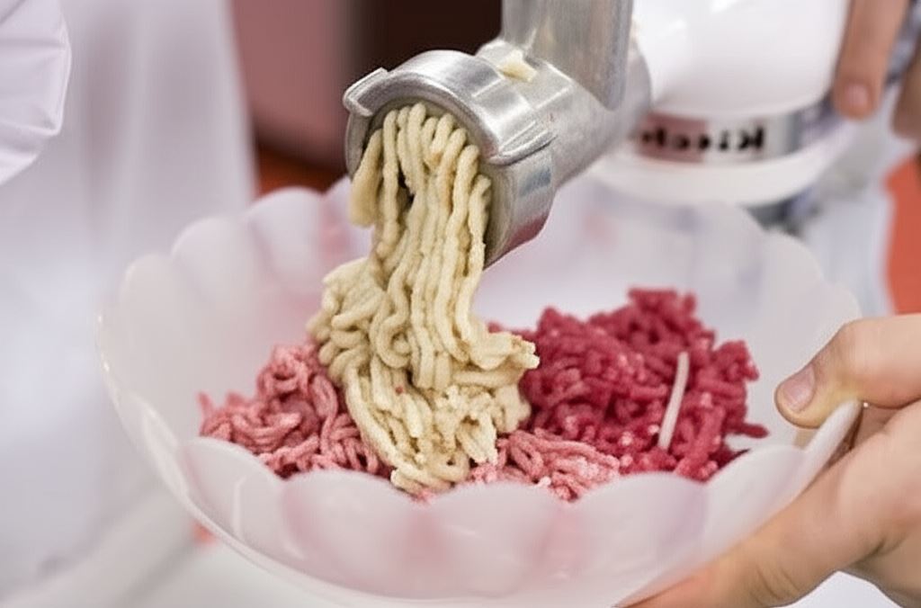 Mięso, odciśniętą bułkę oraz cebulę przepuść przez maszynkę do mielenia mięsa.