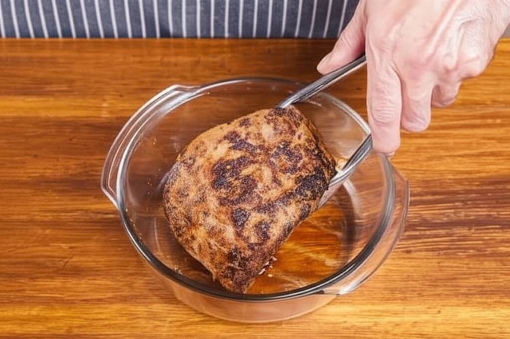 Mięso umieść w naczyniu żaroodpornym i włóż do piekarnika rozgrzanego do 180 °C. Piecz przez 60 minut.