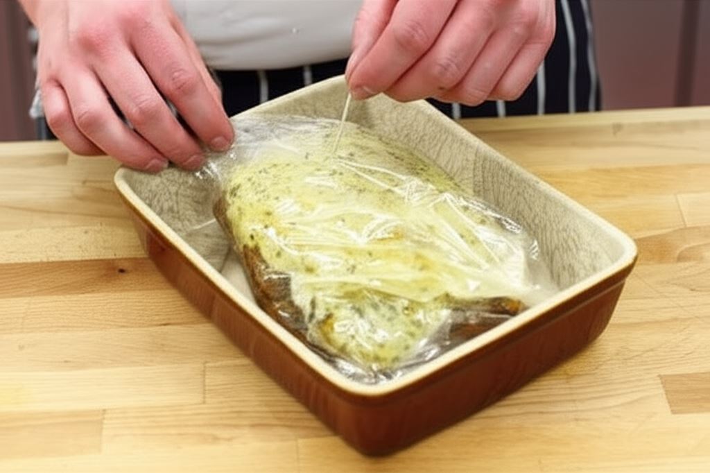 Przygotowane w ten sposób mięso umieść w woreczku do pieczenia i nakłuj go w kilku miejscach.