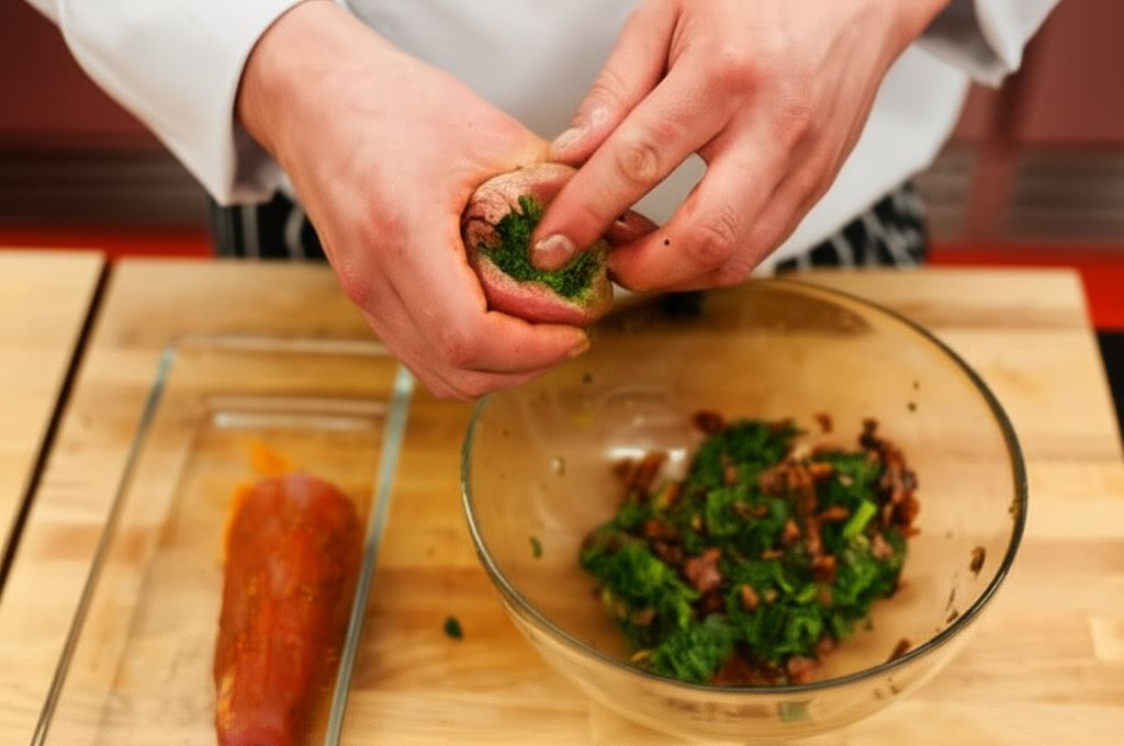 Obecnie wypełnij polędwiczki nadzieniem.
