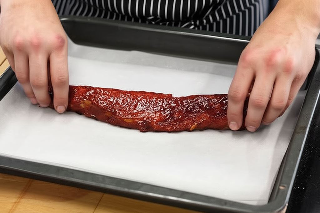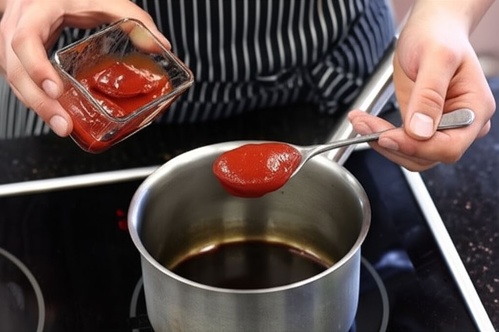 W rondlu wymieszaj ocet balsamiczny, cukier, miód i ketchup. Gotuj mieszankę przez około 5 minut do uzyskania gęstej glazury. Przygotowany sos odstaw na moment do wystygnięcia. Umieść w nim mięso.