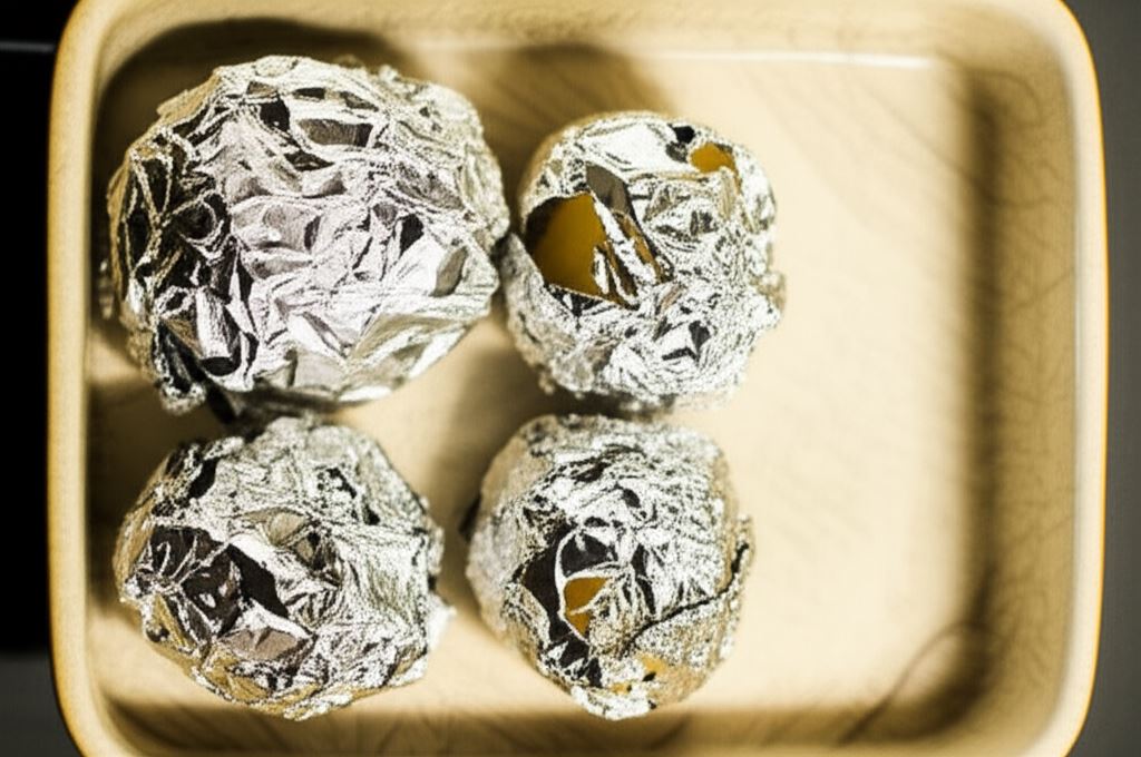 Sekret idealnie upieczonych ziemniaków tkwi w folii aluminiowej, która tworzy mini-piekarnik wokół każdego ziemniaka. Dzięki temu aromat przypraw intensywnie przenika do wnętrza, a ziemniak pozostaje soczysty. Charakterystyczne nacięcie na krzyż i delikatne wyciśnięcie miąższu to typowo amerykański sposób serwowania, który pozwala sosowi przeniknąć głębiej do wnętrza.