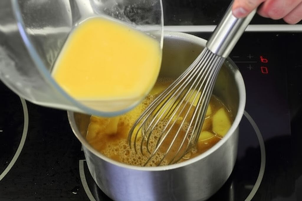 Po upieczeniu mięso odłóż na bok, a z formy starannie zbierz wytworzony płyn, wlej go do rondelka, dodaj Sos do pieczeni jasny Knorr wymieszany w 200 mililitrach zimnej wody.