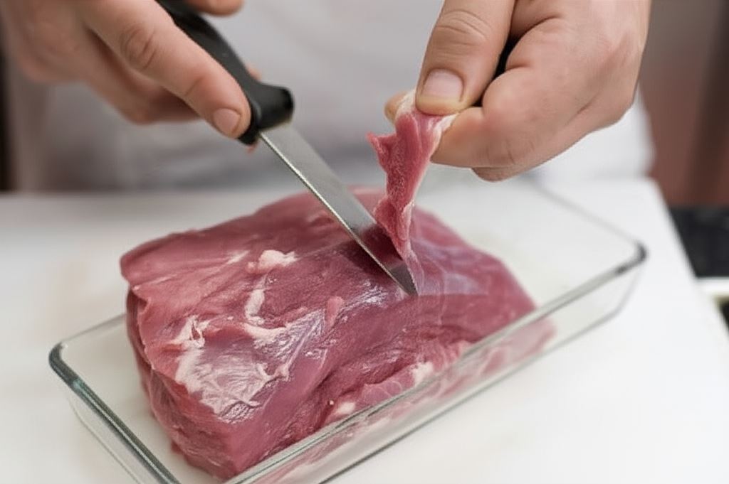 Karkówkę opłucz, oczyść z błonek i przerostów tłuszczu.