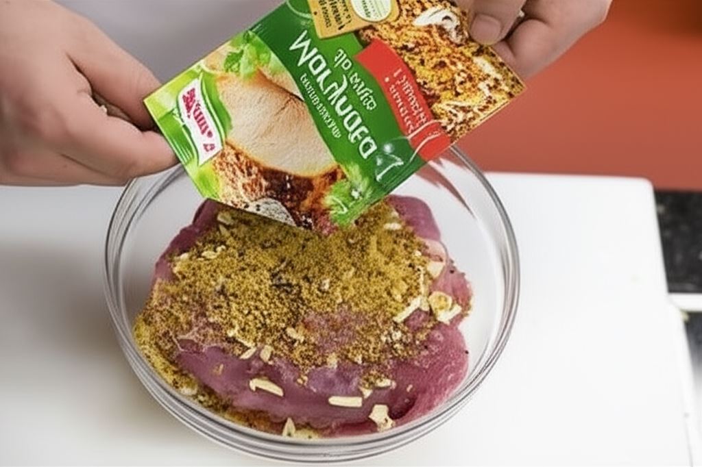 Natrzyj rozdrobnionym czosnkiem i przyprawą Knorr, odłóż w zimnym miejscu na około 6 godzin.