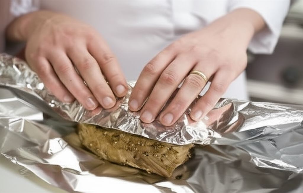 Po tym czasie karkówkę przyrumień na patelni, owiń w folię aluminiową. Umieść w rozgrzanym do 190 stopni piekarniku na 120 minut.