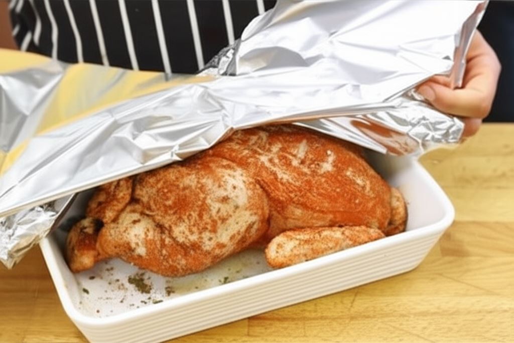 Kurczaka umieść w naczyniu żaroodpornym, nakryj folią i wstaw do lodówki na 30 minut.