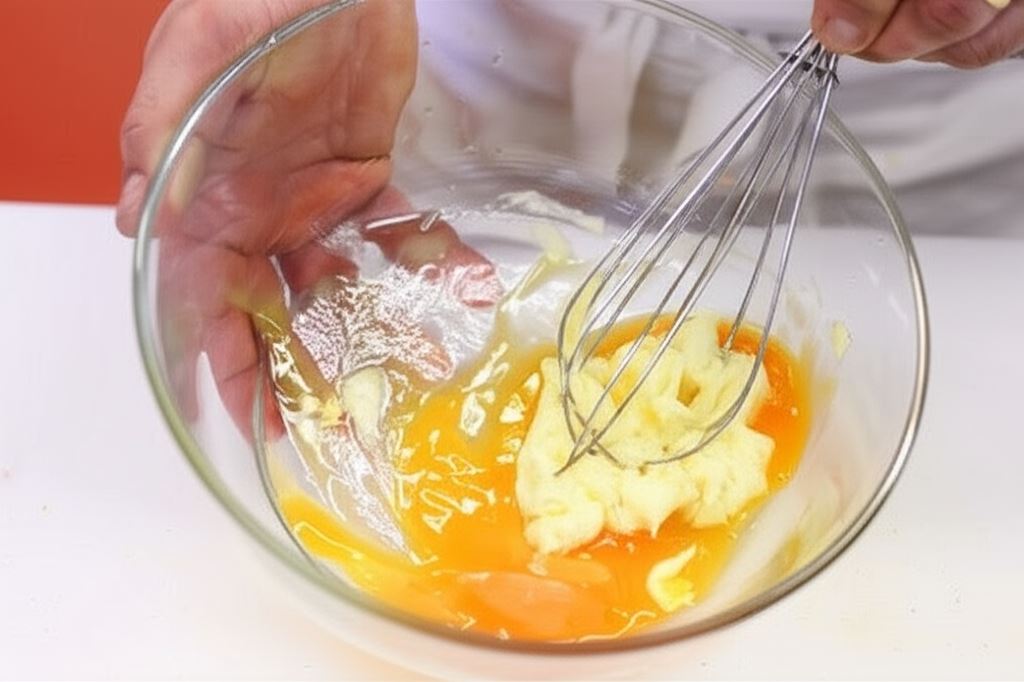 Żółtka z 2 jaj wymieszaj z masłem, białka zaś ubij na sztywną pianę.