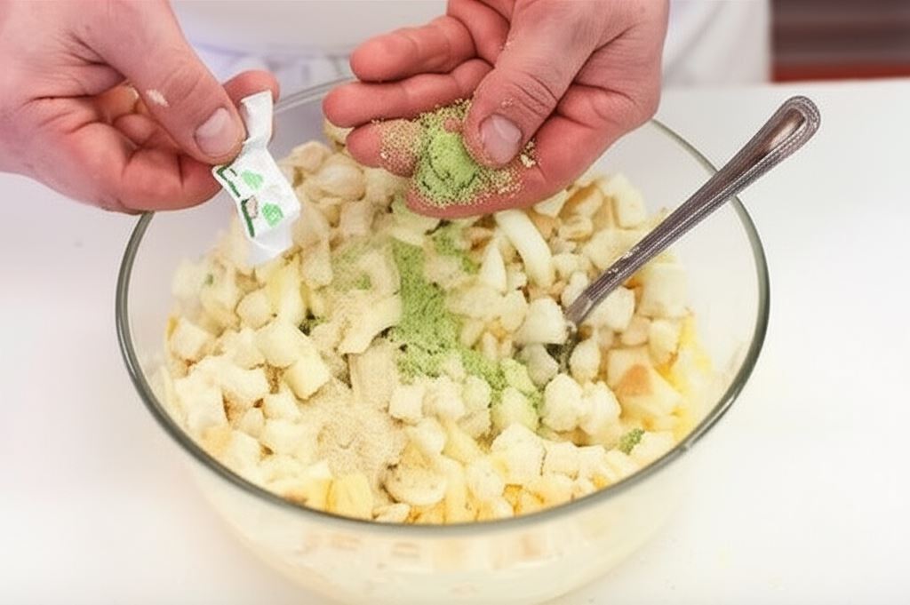 Połącz razem wszystkie składniki farszu: posiekane jajka, pieczywo, utarte masło, bułkę tartą oraz pokruszoną Mini kostkę Knorr – na koniec dodaj pianę z białek i ostrożnie wymieszaj.