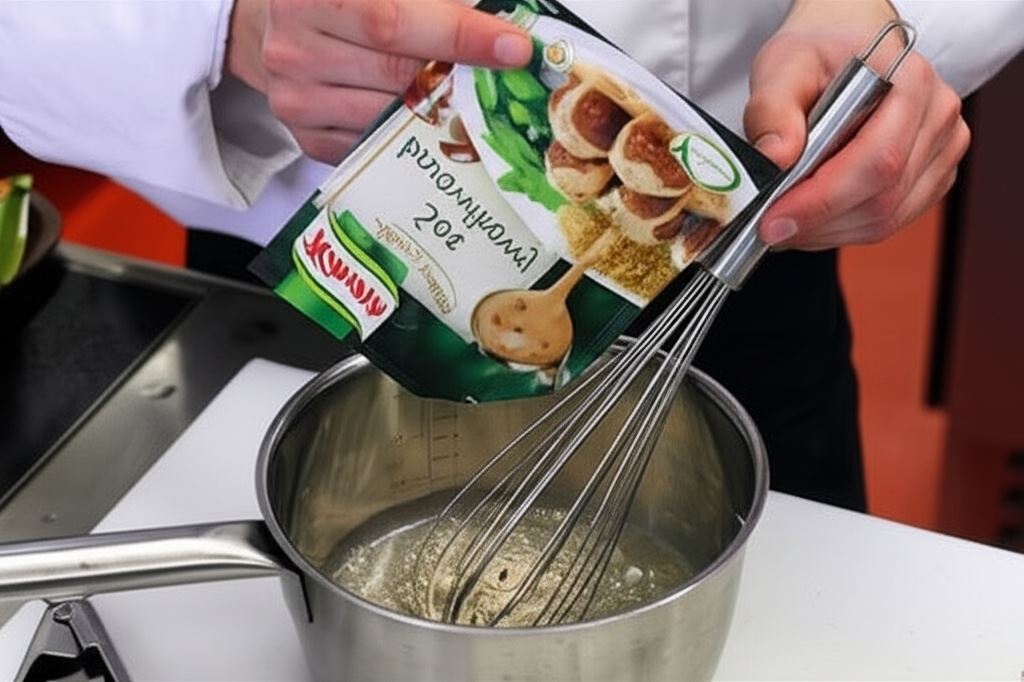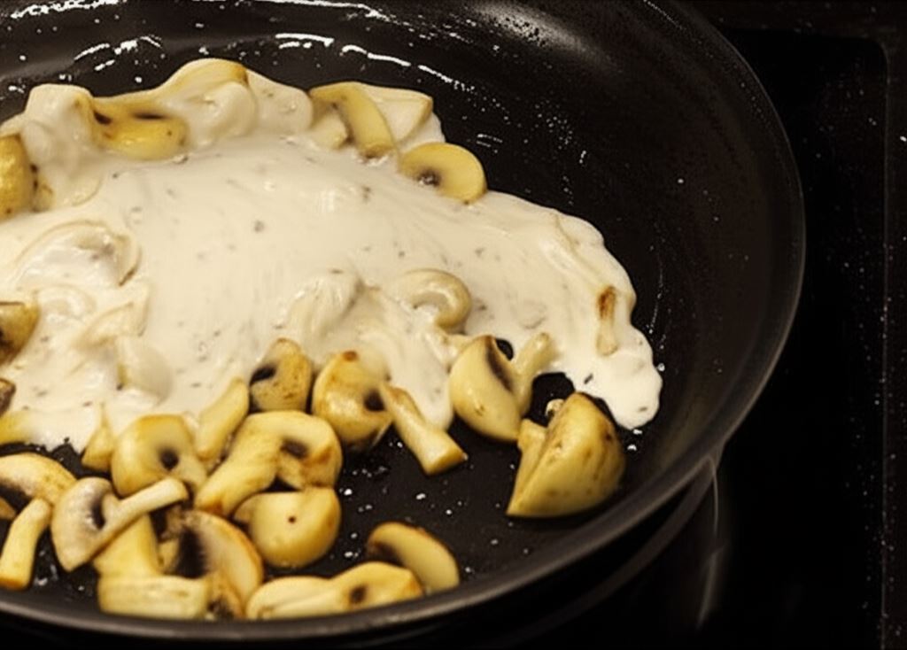 Sos borowikowy wymieszaj w 150 mililitrach śmietany oraz 150 mililitrach wody.