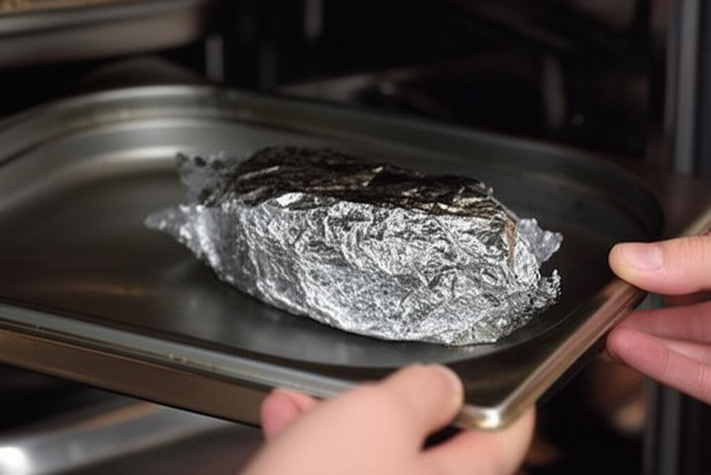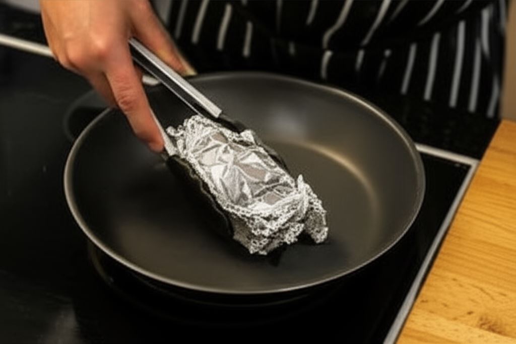 Rozgrzej olej na patelni i przysmaż owinięte w folię mięso z każdej strony.