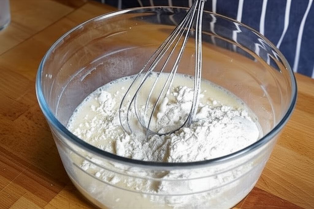Teraz zmieszaj składniki ciasta, by uzyskać tradycyjne ciasto na pierogi.
