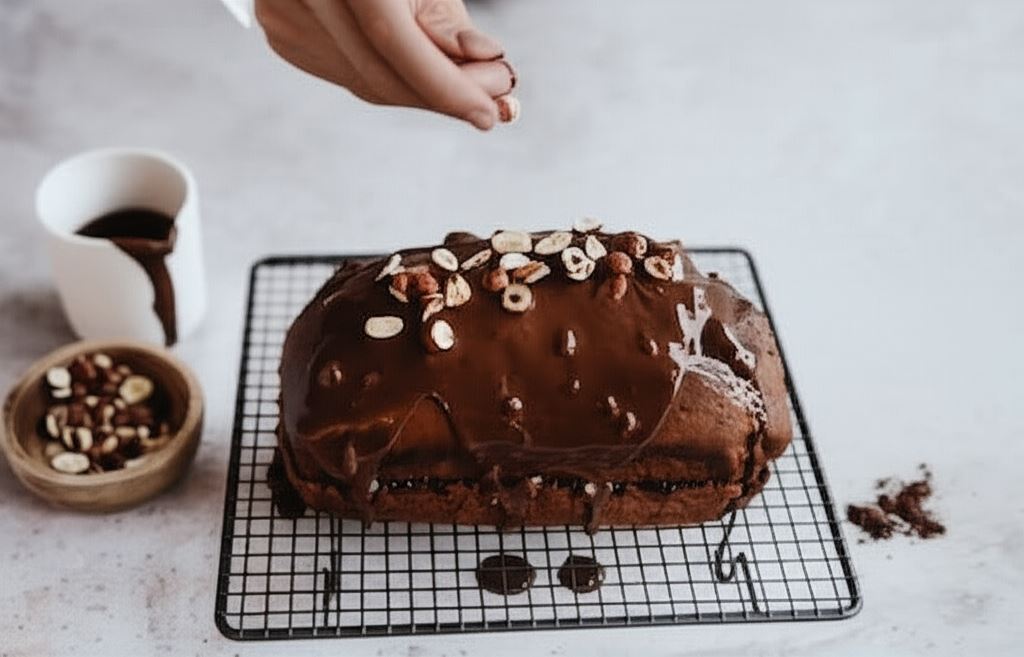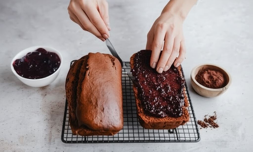 Przygotowanie jest proste – wystarczy połączyć mokre składniki (olej, banana, pomidory z puszki i cukier) z suchymi (mąka, proszek do pieczenia, przyprawa piernikowa, kakao, soda i sól). Po upieczeniu i wystudzeniu ciasto przekrawamy, smarujemy powidłami śliwkowymi i polewamy czekoladą z dodatkiem oleju kokosowego. Na wierzchu posypujemy orzechami laskowymi.