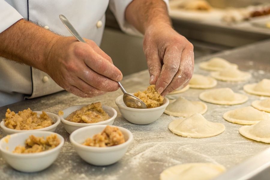 W Multi Cook specjalizujemy się w produkcji pierogów o idealnie zbalansowanej konsystencji nadzienia. Nasze produkty wyróżniają się doskonałą strukturą farszu, który nie wycieka podczas gotowania, zachowując przy tym pełnię smaku i aromatu.
