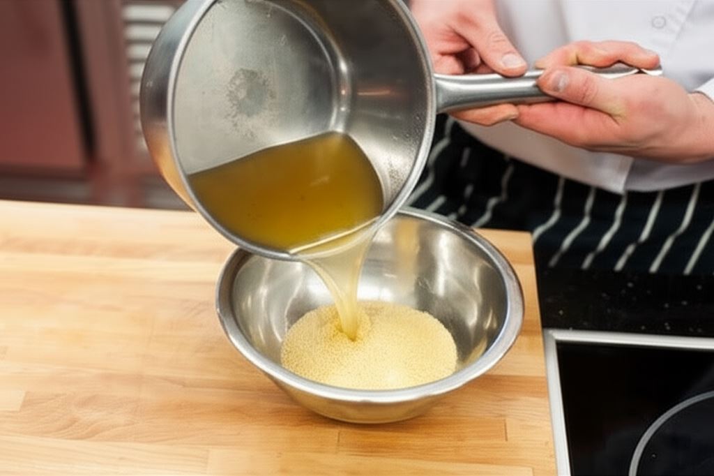 Zalej kaszę przygotowanym bulionem i odstaw pod przykryciem na 1 minutę.