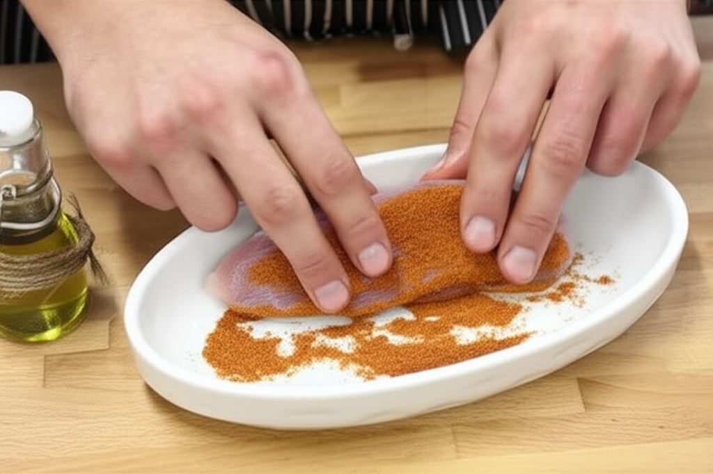 Rewrite:nOpłucz mięso i wysusz. Przypraw mieszanką Knorr do złotego kurczaka i posmaruj oliwą z oliwek. Zapiekaj w piekarniku około 15 minut w temperaturze 180 stopni C.