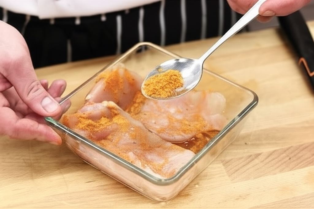 Mięso przetnij wzdłuż na połowę. Przyprawę Knorr połącz z olejem i natrzyj tym mięso.