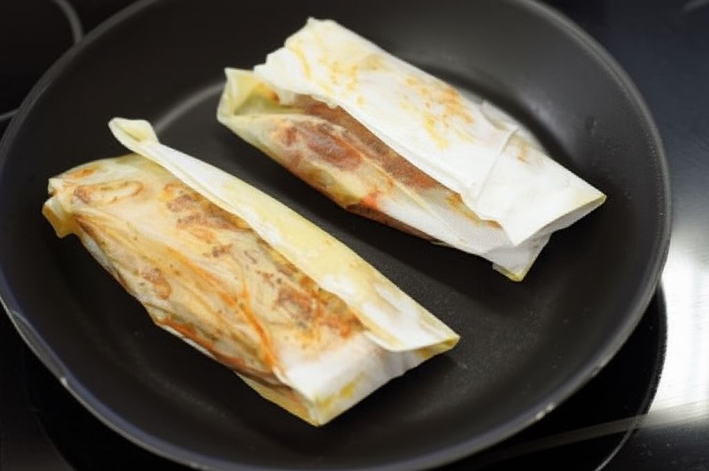 Sekret tego dania tkwi w technice przygotowania – nacięcie piersi tworzy kieszonkę, która po wypełnieniu farszem i delikatnym obsmażeniu zamienia się w soczysty przysmak. Smażenie w pergaminie to sprytny trik, który nie tylko zachowuje czystość kuchni, ale również sprawia, że mięso pozostaje soczyste i aromatyczne.