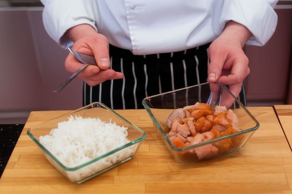 Kurczaka potnij w kostkę, przypraw przyprawą Knorr i przysmaż na patelni. Ryż ugotuj.