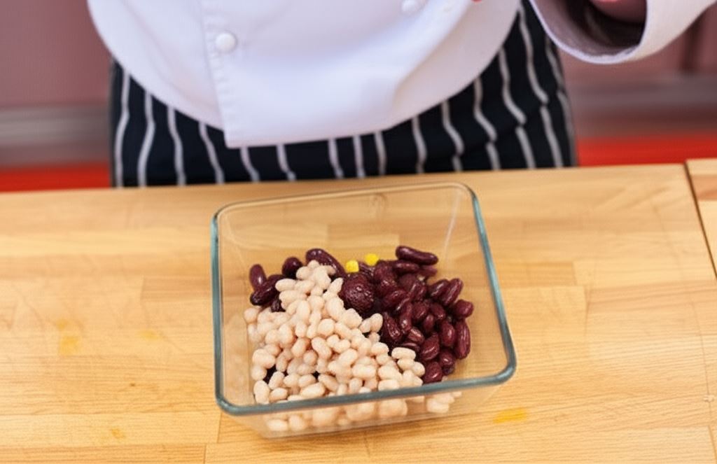 Odcedź białą fasolę, czerwoną fasolę i kukurydzę.