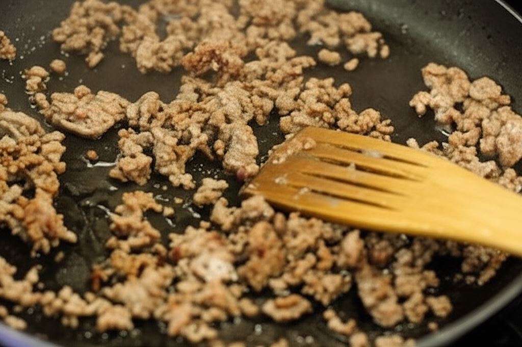Mięso mielone podsmażaj przez około 8 minut na rozgrzanym oleju.