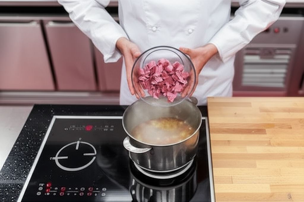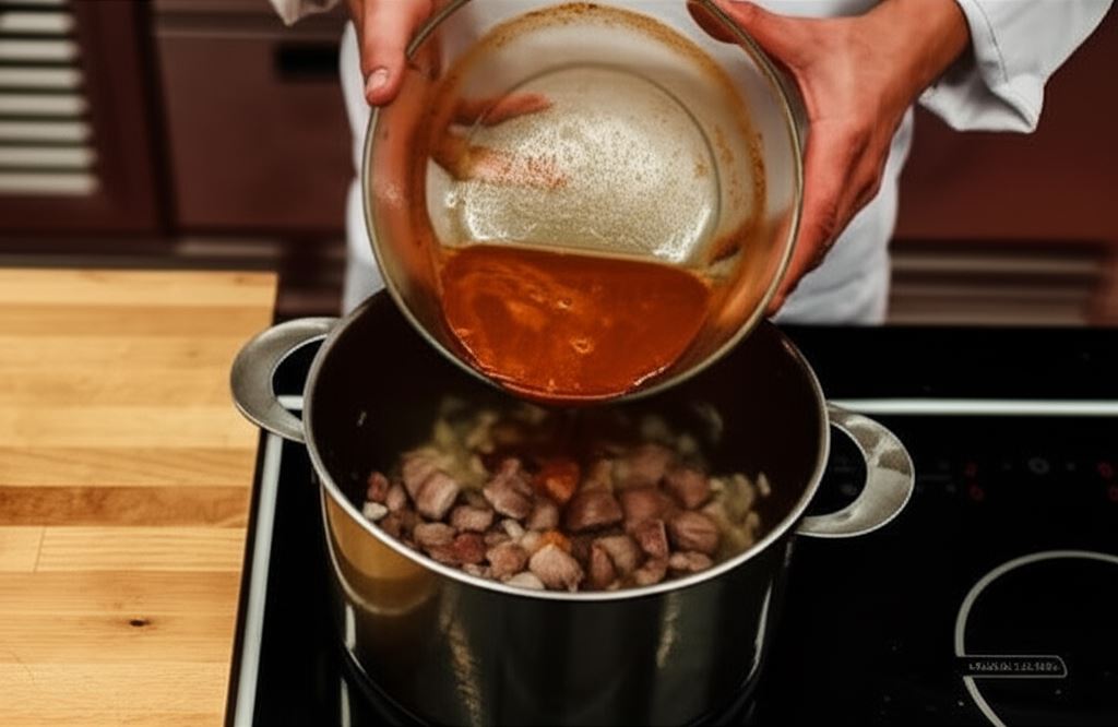 Wymieszaj Fix Knorr z 400 ml wody i wlej do garnka. Gotuj do momentu, aż sos stanie się gęsty, a mięso zmięknie.