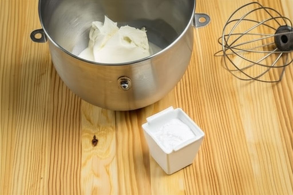 Wszystkie składniki kremu zmiksuj na sztywno np. przy użyciu robota kuchennego.