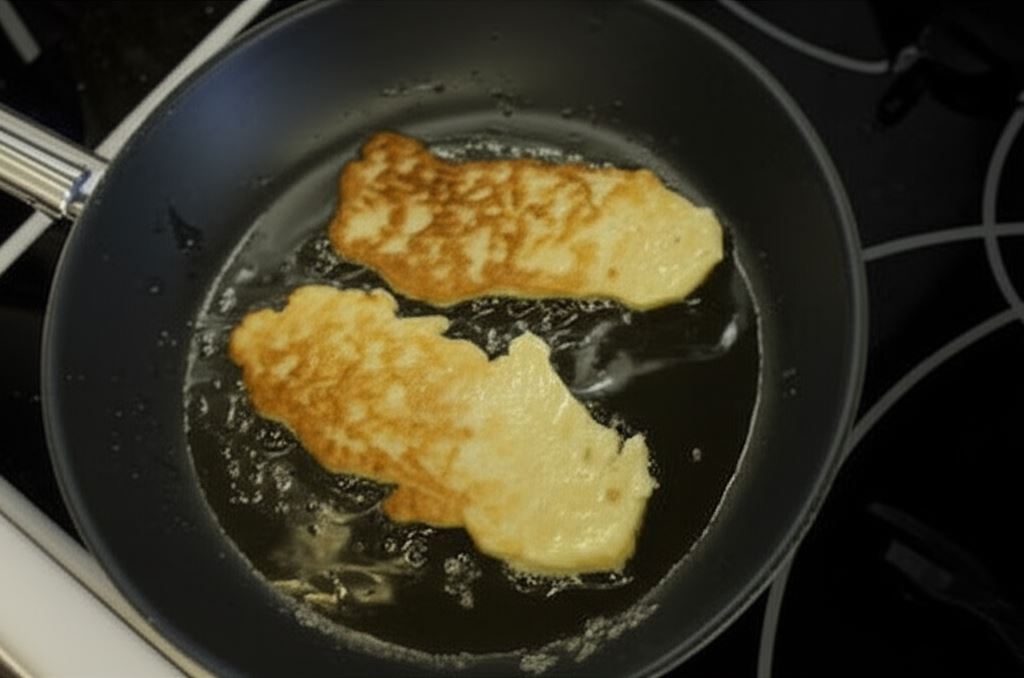 Ciasto nakładaj porcjami na gorący olej, kształtując podłużne placki. Smaż po obu stronach.