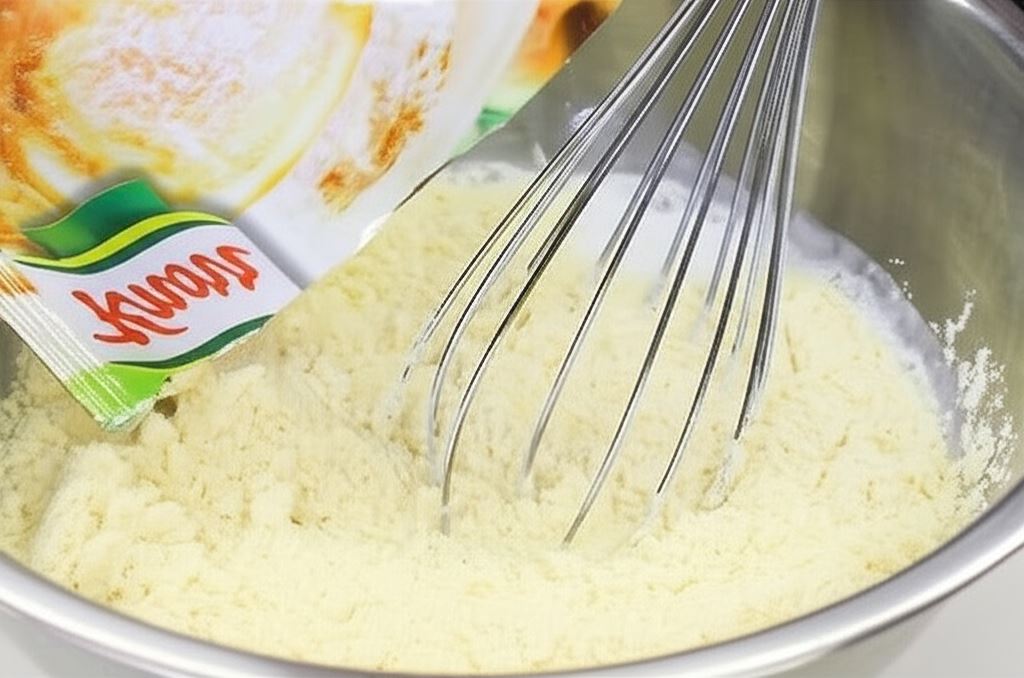 W misce połącz 1,5 szklanki maślanki, jajo, mąkę, cukier, proszek do pieczenia i cynamon, tworząc jednolitą masę.
