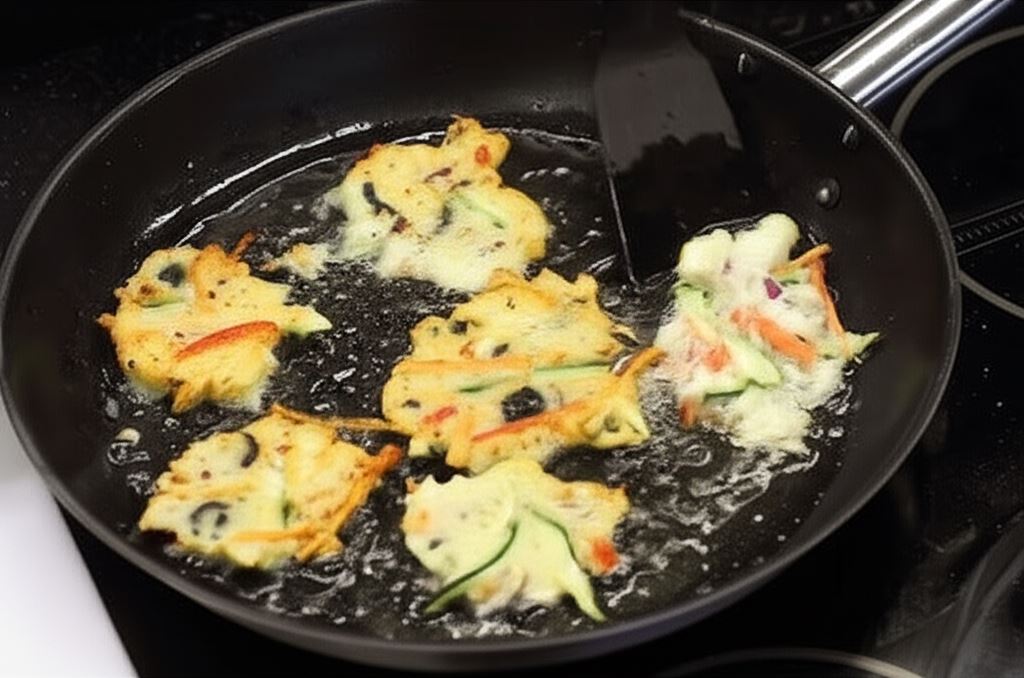 Nakładaj ciasto na rozgrzany tłuszcz, formując niewielkie placki. Smaż je do złotego koloru.