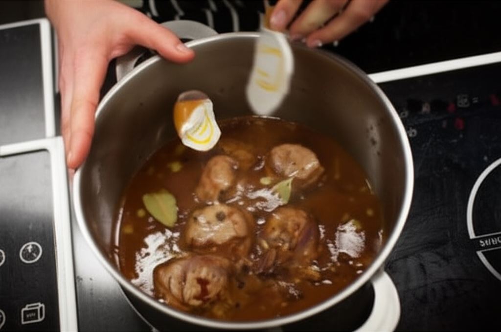 Włóż mięso z powrotem do garnka i dolej 500 ml wody – doprowadź do wrzenia. Potem wsyp ziele angielskie, liście laurowe oraz Esencję do duszonych mięs Knorr, która uwydatni smak dania. Polędwiczki gotuj na małym ogniu przez około 20 minut. Gotową potrawę serwuj np. z puree ziemniaczanym.