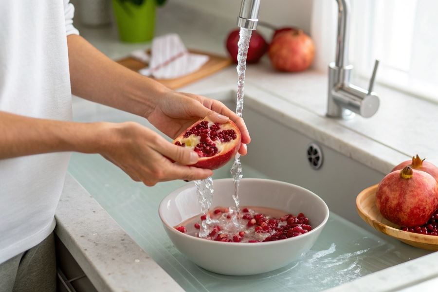 Profesjonalna wskazówka: Dodaj łyżkę soli do wody, aby jeszcze skuteczniej oddzielić pestki od białych błonek. Po wyłuskaniu wszystkich pestek, wystarczy odcedzić je przez sitko i osuszyć ręcznikiem papierowym.