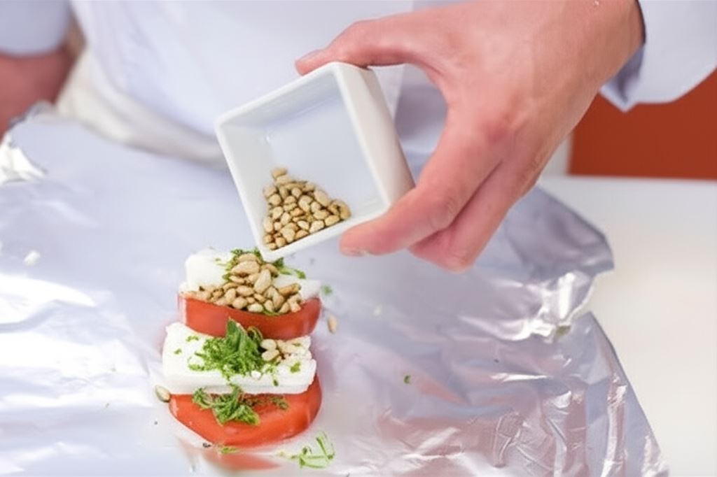 Pomidory podczas grillowania uwalniają likopen – silny przeciwutleniacz, który staje się bardziej przyswajalny po obróbce termicznej. Orzeszki pinii, choć niewielkie, są bogatym źródłem białka i zdrowych tłuszczów. Połączenie tych składników z aromatycznym sosem czosnkowym tworzy nie tylko smaczną, ale i wartościową przekąskę.