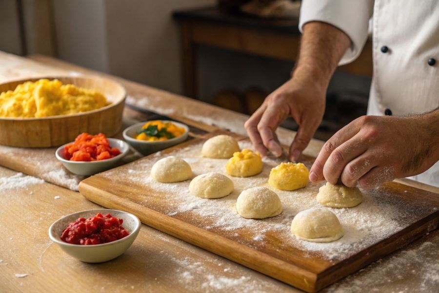 Zioła takie jak koperek, szczypiorek czy bazylia świetnie komponują się z nadzieniem serowym. Dla wyrazistszego smaku można dodać odrobinę czosnku niedźwiedziego lub suszone pomidory. Przy formowaniu klusek z serem szczególnie ważne jest dokładne zlepienie brzegów i formowanie nieco mniejszych klusek niż w przypadku nadzienia mięsnego.
