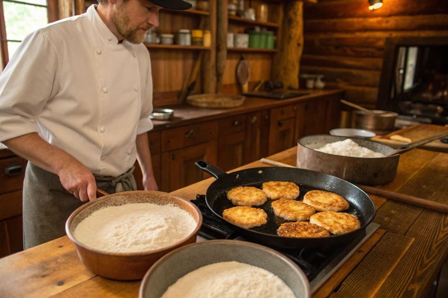 Techniki smażenia różnią się w zależności od składu mieszanki. Placki z mąką ziemniaczaną najlepiej smażyć na głębokim tłuszczu, dodając go stopniowo. Dla mieszanek z mąką kukurydzianą sprawdza się metoda „podwójnego smażenia” – krótkie obsmażenie z obu stron, a następnie dokończenie w piekarniku w temperaturze 180°C przez 5-7 minut.