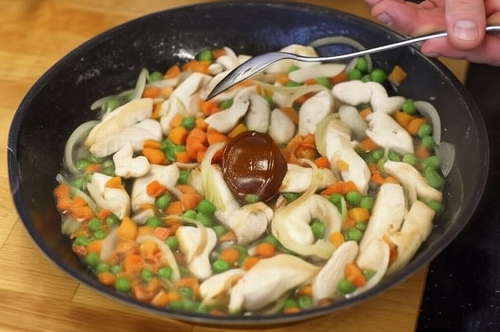 Delikatne kawałki kurczaka otulone aksamitnym sosem, słodka marchewka i soczysty groszek tworzą harmonijną kompozycję smaków, która rozgrzewa i koi zmysły. Nasza potrawka to prawdziwy comfort food, który przygotujemy w zaledwie kilkanaście minut!