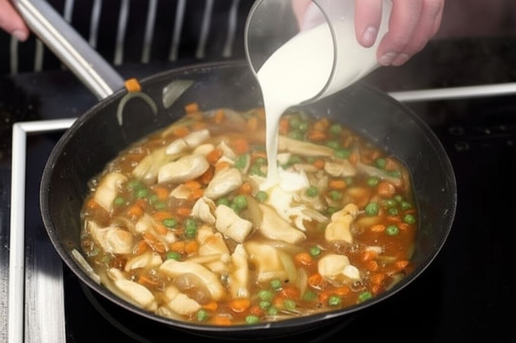 Gotuj wszystko razem przez kolejne 4 minuty, następnie dodaj śmietanę do sosu.