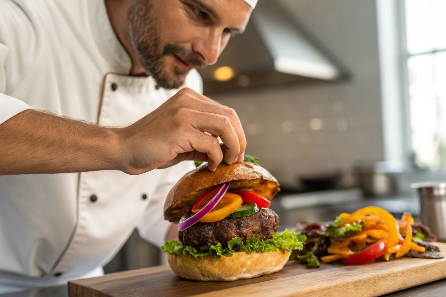 Metoda przygotowania burgera ma kluczowe znaczenie dla jego wartości zdrowotnej. Grillowanie lub pieczenie w piekarniku konwekcyjnym pozwala na redukcję zawartości tłuszczu nawet o 30% w porównaniu do smażenia. Technika sous-vide stosowana w produkcji premium pozwala zachować maksimum składników odżywczych i naturalny smak mięsa bez konieczności dodawania nadmiaru soli czy wzmacniaczy smaku.
