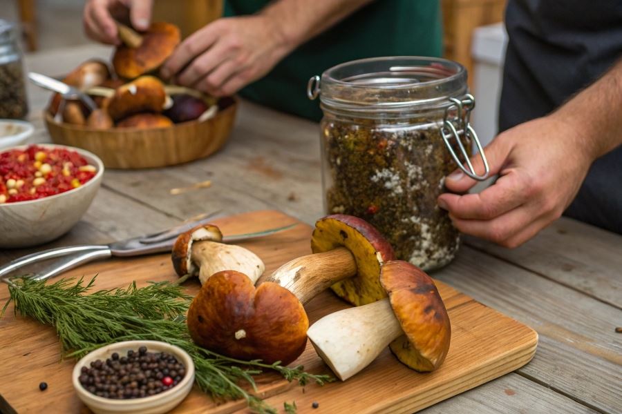Proces marynowania podgrzybków w occie