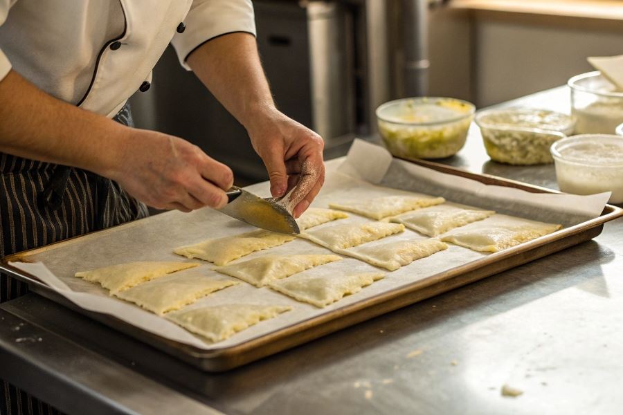 Odpowiedni skład ciasta ma kluczowy wpływ na jakość zamrożonych czebureki. Ciasto z dodatkiem jajka i odpowiednią ilością tłuszczu (około 30-40g na 500g mąki) lepiej znosi proces zamrażania. Warto również dodać łyżkę octu lub soku z cytryny do ciasta – kwasowość pomaga zachować elastyczność po rozmrożeniu i zapobiega kruszeniu się.